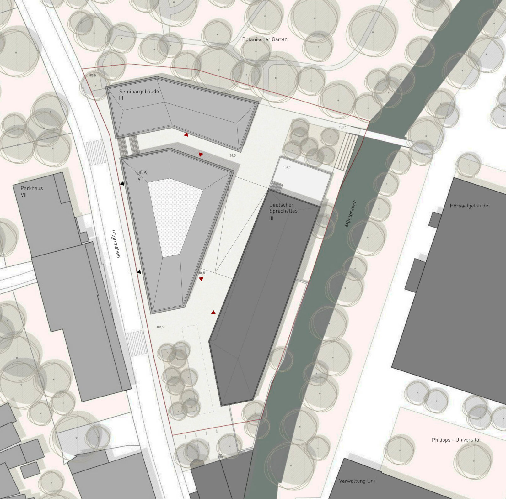 Wettbewerbsbeitrag zum Neubau Forschungszentrum Deutsches Dokumentationszentrum für Kunstgeschichte – Bildarchiv Foto Marburg (DDK) und Neubau Seminargebäude der Philipps-Universität Marburg am Pilgrimstein, Campus Firmanei