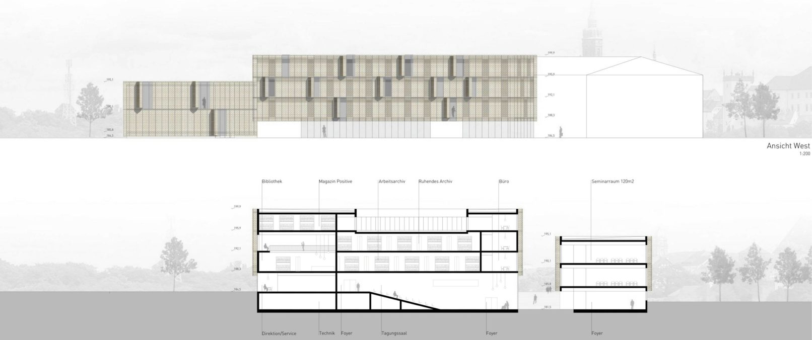 Insgesamt zeichnet sich das Projekt durch den Mut aus, das DDK vom Archiv her zentral zu denken und im Raumangebot für Veranstaltungen die beiden Gebäude gemeinsam zu erschließen und hier einen Mehrwert gegenüber der Auslobung zu generieren.